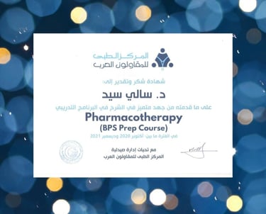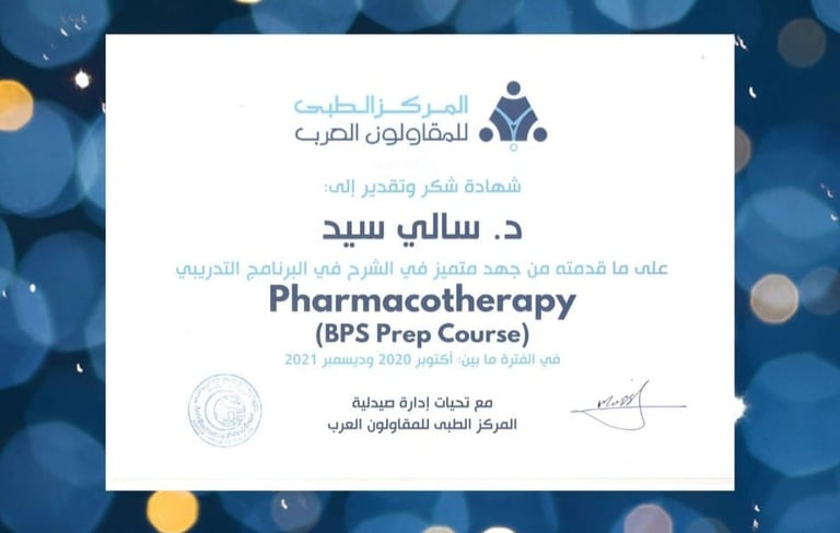 Instructor Recognition – Pharmacotherapy (BPS Prep Course), Arab Contractors Medical Center (2020–2021)