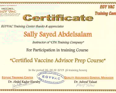 Certified Vaccine Advisor Prep Course – EGYVAC Training Center (2019)