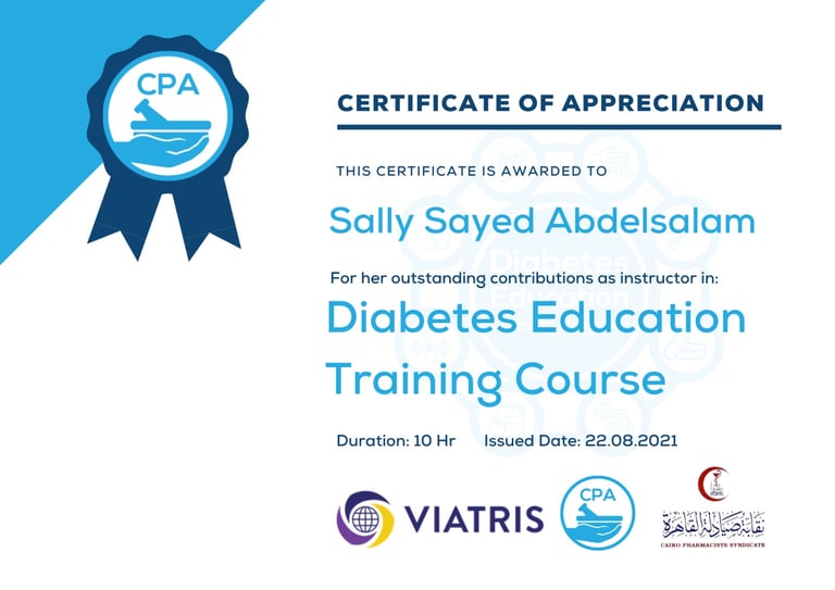 Instructor Appreciation – Diabetes Education Training Course (Viatris & Cairo Pharmacists Syndicate, 2021)